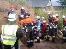 Die Übung wurde gut vorbereitet: Die Front des PKWs steckte tief in einem Erdhügel und beide Personen waren teilweise verschüttet. Der PKW musste also erst freigeschaufelt werden, das war Knochenarbeit. Anschließend wurde das Dach mit Spreizer und Schere entfernt. Ein 70-Kilo-Dummy wurde mittels Rollgliss, welches an der Anhängeleiter befestigt wurde, aus dem Auto gehoben. Natürlich wurde auch für die Verkehrsabsicherung und den Brandschutz gesorgt.