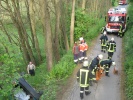 Daher üben die Kameradinnen und Kameraden der Feuerwehr Roßtal unter möglichst realistischen Bedingungen. Wenn auch teilweise extreme Situationen angenommen werden, so sind diese keinesfalls unrealistisch - wie zum Beispiel ein Pkw, der am Sportplatzweg den Abhang hinunterschlittert und auf der Seite an einem Baum lehnend zum Stillstand kommt.