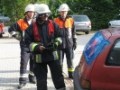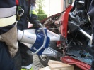 Richtig spannend wurde es dann in der Praxis, wo die Teilnehmer gemeinsam mit Axel Topp an einem richtigen Pkw übten. Es wurde die komplette Rettung einer verletzten Person aus einem verunfallten Pkw durchgespielt - vom Umgang mit dem Patienten, Unterbauen des Fahrzeugs, "Glas-Management" bis zum Einsatz von Spreizer und Rettungsschere sowie zur Fußraumerweiterung durch Rettungszylinder. Es wurde viel ausprobiert und die ein oder andere "unkonventionelle" Methode angewandt. Auch hier richtete sich alles nach der SEBTEFÜ-Methode. Die Vorgehensweise war dank der lockeren Unterrichtsmethode sehr einprägsam, zudem gab Ausbilder Axel Topp immer wieder kleinere wertvolle Hinweise.