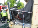 Die Türen des Omnibus waren - anders als bei PKW üblich - am leichtesten mit einem Trennschleifer an den Scharnieren zu öffnen um so einen therapeutischen Zugang zu erhalten. Grundsätzlich ist der Umgang mit pneumatischen Komponenten schwieriger - und wenn sich nur beim Abstellen des Motors der Fahrersitz in eine Standard-Position senkt und der eingeklemmte Fahrer so in seiner Position bewegt werden könnte.