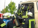 Schlussendlich konnte der eingeklemmte Dummy mit Hilfe der Schaufeltrage patienten- und achsengerecht aus dem Bus gerettet werden.