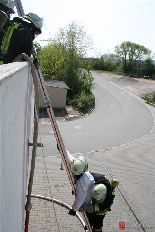 Das Abseilen des Opfers über die Leiter gestaltete sich schwierig, da der Arbeiter immer wieder zusammenbrach.
