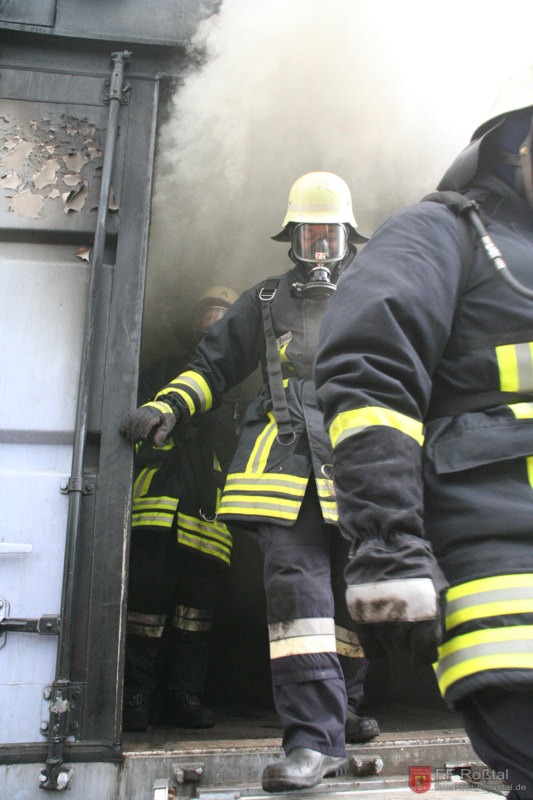 Entzünden des Feuers. Die Spanplatten an den Wänden gasen bei der Hitze aus, und ermöglich damit erst die Ausbildung von Flash-Overn.