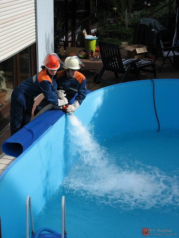 Befüllen eines Swimmingpools - Beim Ablassen des Pools brach eine Wand wegen des fehlenden Wasserdrucks ein