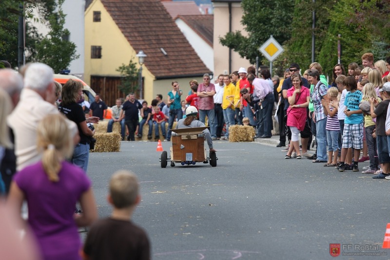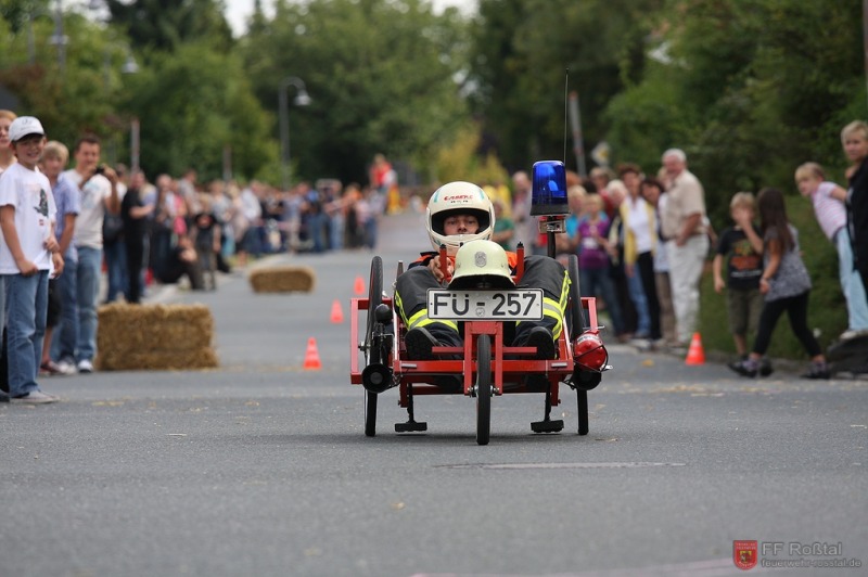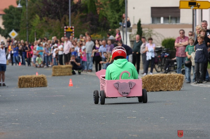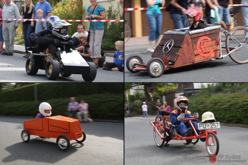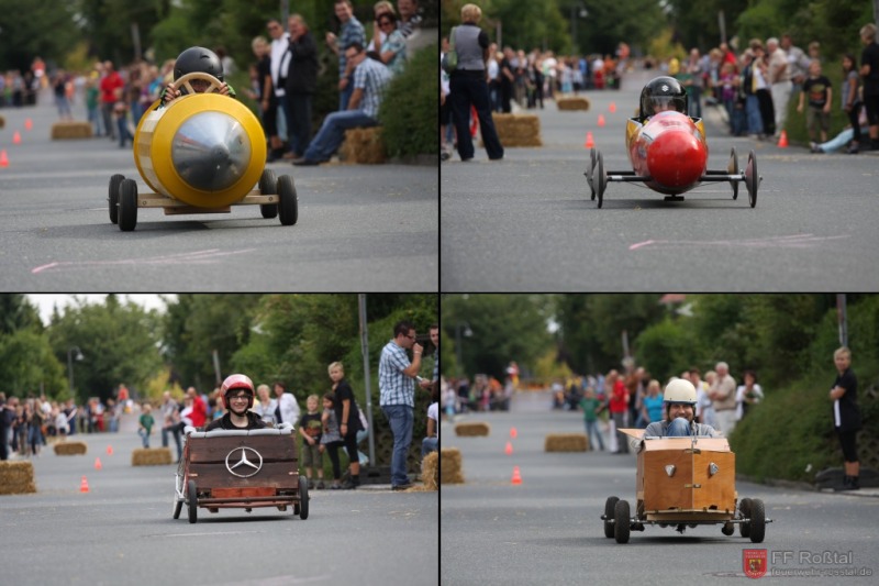 Die Fahrerin blieb bei diesem Sturz unverletzt und konnte weiterfahren. Die gleiche Seifenkiste kippte (als einzige) weitere zwei mal um. In einem Fall kam es zu leichteren Verletzungen Fotos: Ines Volgnandt