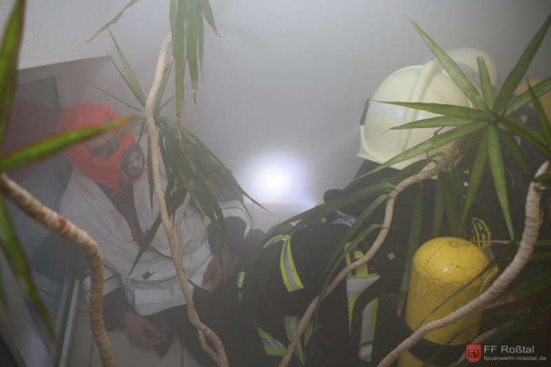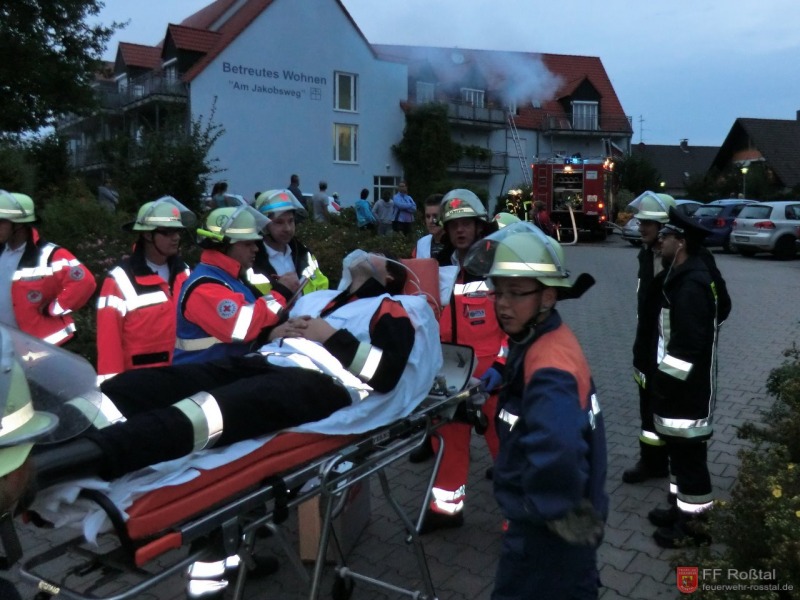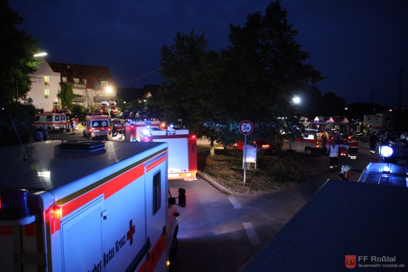 Die Unterstützungsgruppe der Sanitäts-Einsatzleitung hat auf eigene Entscheidung in einiger Entfernung zur Feuerwehr-Einsatzleitung Aufstellung bezogen