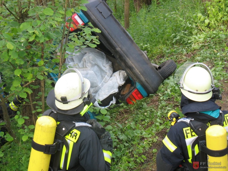Verkehrsunfall: Brennender Pkw hängt in Böschung - 15. Mai 2011 - Bild 5 von 10