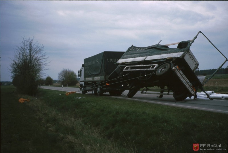 LKW-Anhänger kippte um - 09. April 2001