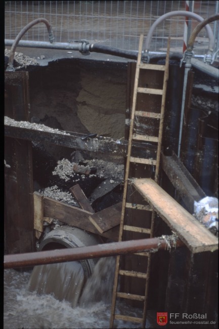 Bild 5 von 5 Dieses Bild ist von einem anderen Einsatz, wo es ebenfalls wegen Unterspülung der Straße zu Problemen kam.