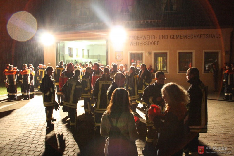 Die Einsatzkräfte vor dem Weitersdorfer Feuerwehrhaus