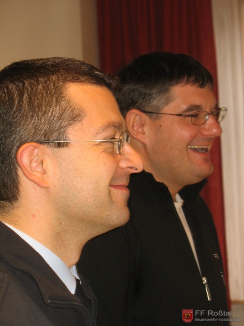 Nach der schriftlichen Prüfung freuen sich (links) KBM Frank Bauer und KBM Armin Betz über das hervorragende Ergebnis der Teilnehmer