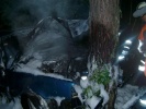 | Die Feuerwehr Roßtal wurde während einer Einsatzübung mit der Jugend ("Berufsfeuerwehrtag") zu einem schweren Verkehrsunfall gerufen. An der Unfallstelle wurde ein stark brennender PKW vorgefunden, die Polizei konnte zu Beginn keine Aussage darüber treffen ob sich noch Insassen im Auto befinden. Daraufhin musste das Fahrzeug abgesucht werden, was sich durch die starken Flammen als sehr gefährlich erwies. Es stellte sich jedoch bald heraus, dass sich alle Insassen bereits in ärztlicher Behandlung befinden. Mit einem Schaumstrahlrohr und Pulverlöschern war der Brand schnell unter Kontrolle. Der Unfall wurde wahrscheinlich durch einen Überholvorgang ausgelöst. Diese Stelle ist ein Unfallschwerpunkt, bereits vor zweieinhalb Wochen ereignete sich ein schwerer Verkehrsunfall ca. 200 m weiter Richtung Clarsbach. Vor einem Jahr verunglückte dort eine Person tödlich. |