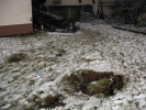 * Der genaue Unfallhergang wird von der Polizei noch rekonstruiert. Klar ist jedoch, dass das Fahrzeug nur "fliegend" hinter das Wohnhaus gelangen konnte. Dabei kam es direkt neben der Hauswand auf, ohne diese jedoch zu Beschädigen oder gar zu Berühren.