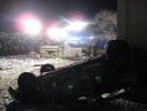Vor Ort stellte sich folgende Lage dar: Der Pkw war von der Straße abgekommen und lag ca. 100 Meter von der Straße entfernt auf dem Fahrzeugdach hinter dem Wohnhaus*. Der Fahrer war aus seinem Fahrzeug geschleudert worden und lag über 10 Meter entfernt in einem Gewächshaus. Die Person wurde bei dem Aufprall auf das Gewächshaus massiv am Kopf verletzt. Die zuerst eingetroffenen First Responder übernahmen die Versorgung des lebensgefährlich verletzten Fahrers. Nach weiterer notärztlicher Versorgung durch den Rettungsdienst wurde der Patient mittels Schleifkorbtrage zum Rettungswagen gebracht.