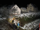 Die Freiwillige Feuerwehr Roßtal wurde bei winterlichen Straßenverhältnissen zu einem schweren Verkehrsunfall mit eingeklemmter Person auf die FÜ 15 bei Buttendorf alarmiert. Der verunfallte Pkw befand sich im Garten eines Wohnhauses und war aufgrund einer Hecke von der Straße aus nicht sichtbar. Wegen dieser ungewöhnlichen Unfallsituation fuhren die ersten Einsatzkräfte zunächst an der Unfallstelle vorbei. Erst die Anwohner machten die Einsatzkräfte der FF Buttendorf und FF Roßtal auf die Örtlichkeit aufmerksam.