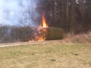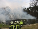 Beim Eintreffen der Einsatzkräfte der Feuerwehr Roßtal, reichte das Feuer bereits bedrohlich Nahe an ein angrenzendes Waldstück heran. Zudem gab es einen zweiten Brand an der anderen Seite der Hecke. Das Feuer konnte glücklicherweise noch rechtzeitig mittels der Schnellangriffe beider Löschgruppenfahrzeuge gelöscht werden.