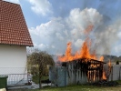 Eine Gartenhütte am Ortsausgang Richtung Buttendorf stand beim Eintreffen der Einsatzkräfte der FF Roßtal im Vollbrand. Das Feuer drohte bereits auf das angrenzende Wohnhaus überzugreifen. Hier schmolzen bereits die Rollläden und Fensterscheiben gingen zu Bruch. Durch den Löschangriff konnten hier weitere Schäden verhindert werden. Die Hütte brannte jedoch komplett nieder.