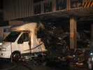 Zum Bergen des Wohnmobils beorderte KBI Rudi Höfler den Rüstwagen der FF Roßtal an die Einsatzstelle. Mittels Seilwinde wurde das völlig verbrannte Fahrzeug aus der Tiefgarage gezogen.
